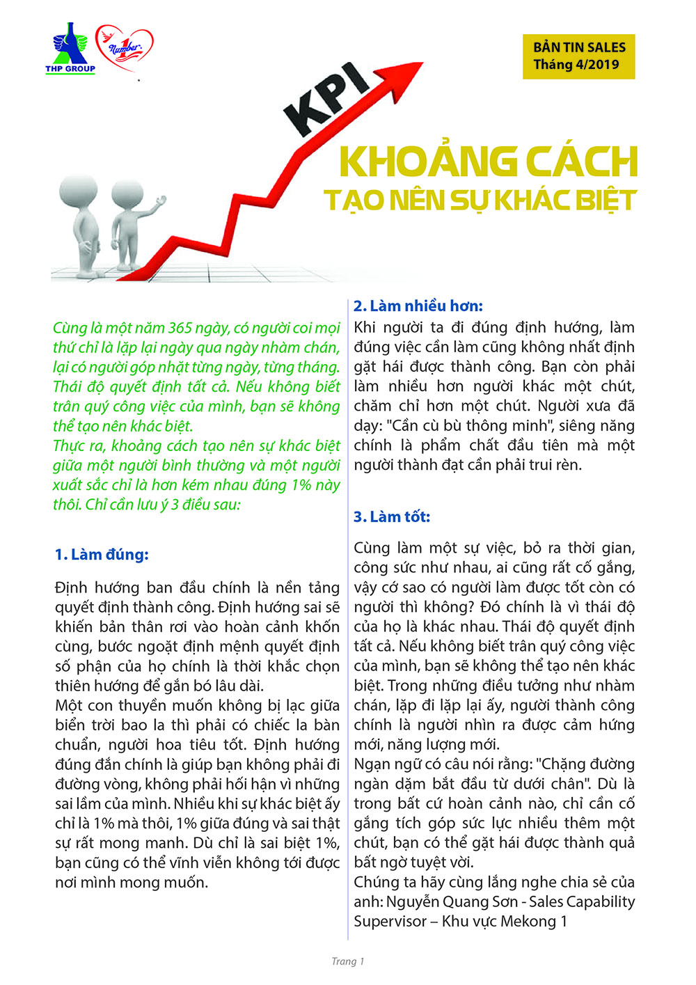 Bản tin Sales: Khoảng cách tạo nên sự khác biệt Đăng ngày 20/04/201921/04/2019 by Lê Châu Nội dung: Hồng Thanh Thiết kế: Thanh Sơn