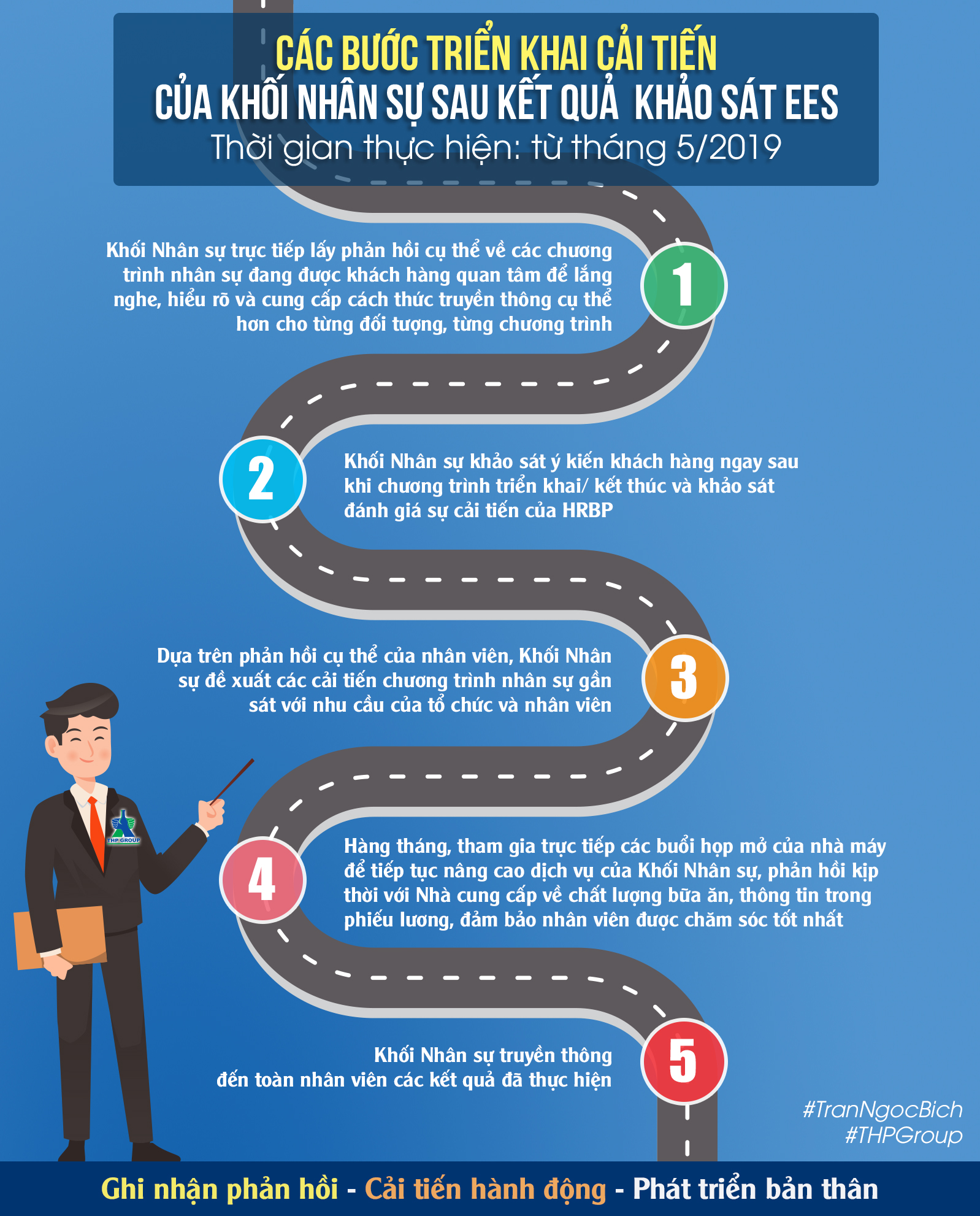 Từ những kết quả của Khảo sát tính hiệu quả các chương trình Nhân sự (EES), khối Nhân sự đã ghi nhận và đưa ra những dưới đây. Với mong muốn mang đến giá trị cho khách hàng từ đó xây dựng môi trường làm việc tích cực hơn cho tất cả các thành viên ở Tập đoàn Tân Hiệp Phát, mọi đóng góp để môi trường làm việc tại công ty hoàn thiện hơn, có thể chia sẻ trực tiếp với HRBP phụ trách và Phó Tổng Giám đốc Trần Ngọc Bích.