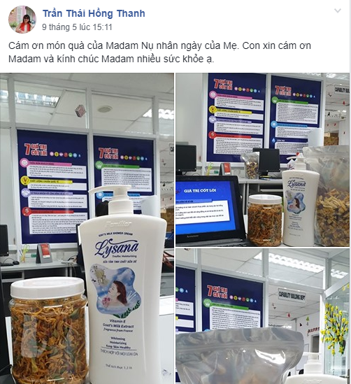 Cũng nhân ngày này, Madam Nụ đã gửi đến toàn thể các nhân viên, những người đã làm mẹ, đang làm mẹ và sẽ làm mẹ lời chúc tốt đẹp nhất kèm theo những món quà ý nghĩa do chính tay Madam chuẩn bị.