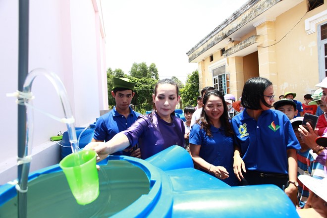 Ngày 23/8, nữ ca sĩ Phi Nhung đã đại diện Tân Hiệp Phát trao tặng hệ thống lọc nước nhiễm mặn thành nước ngọt cho nhân dân 2 tỉnh An Giang và Trà Vinh.