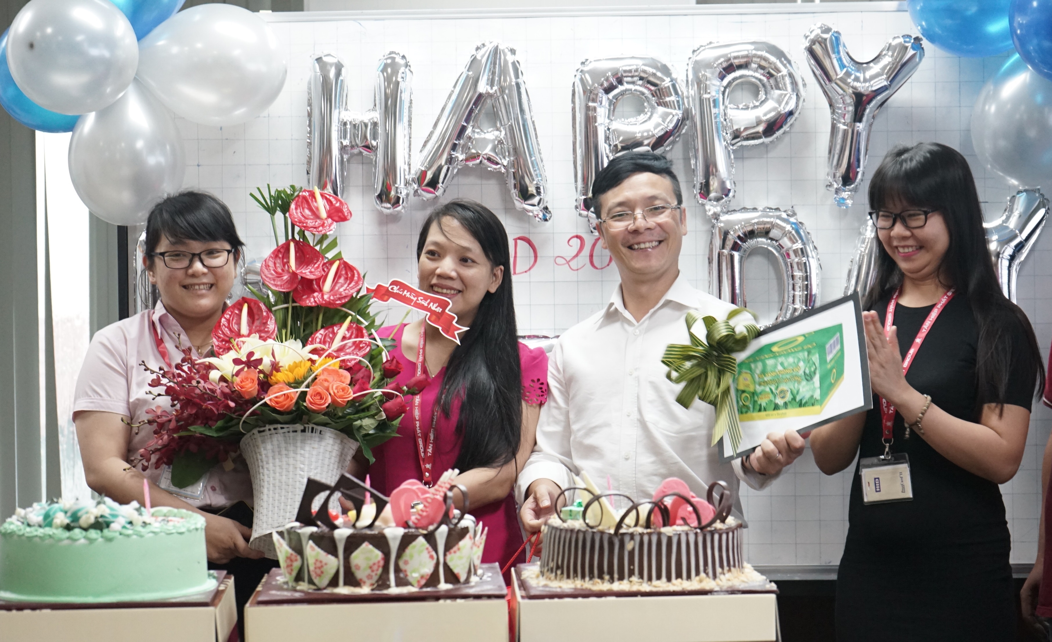 Sau những chia sẻ của chị Bích, anh Nguyễn Quốc Hoàn – Quản lý cấp cao Khối Nhân sự cùng nhiều các anh chị cấp quản lý các phòng ban đã gửi đến anh Hào những lời chúc chân thành. Bên cạnh đó, những anh chị thuộc khối CDD có sinh nhật trong tháng 5 cũng đã được cắt bánh và đón nhận những lời chúc ý nghĩa của mọi người.