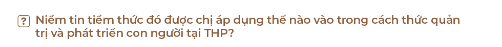 Do đó, triết lí quản trị của THP gắn với việc tạo điều kiện cho mọi người học hỏi, phát triển. Cái gì cũng sẽ đạt được nếu bạn học hỏi được. Đó là tinh thần của “hôm nay phải hơn hôm qua và không bằng ngày mai”, lúc nào cũng phải tạo điều kiện và làm gương cho anh em học hỏi và phát triển.