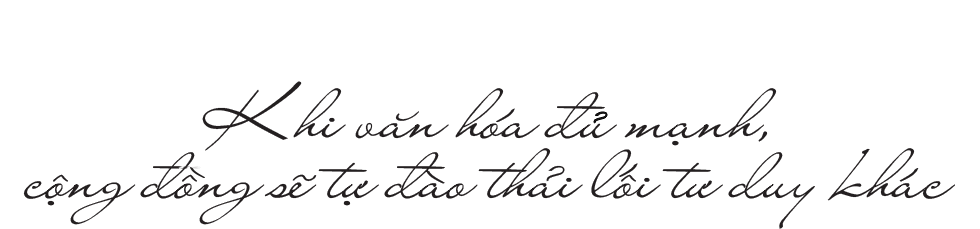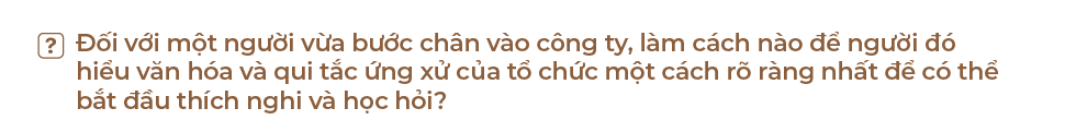 Trong giá trị cốt lõi, có một yếu tố lớn là cộng đồng. Khi xây dựng tư duy giống nhau, các thành viên đều suy nghĩ và xử lý giống nhau với khách hàng, thì cộng đồng đó sẽ tự đào thải với người khác lối tư duy. Văn hóa sẽ tự đào thải đối với những người như vậy.