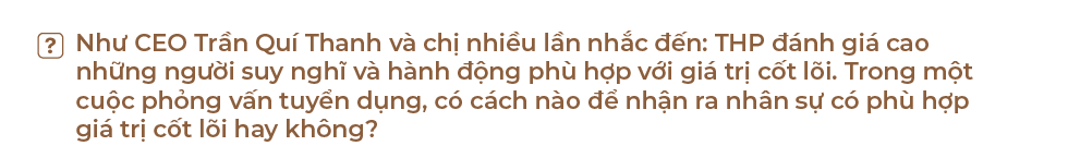 THP có một bộ giá trị cốt lõi rất rõ, nên khi phỏng vấn, người phỏng vấn đưa những tình huống thực tế liên quan đến công việc để xem những người đó mô tả kinh nghiệm cũ có tương đồng với giá trị cốt lõi mà THP xây dựng hay không.