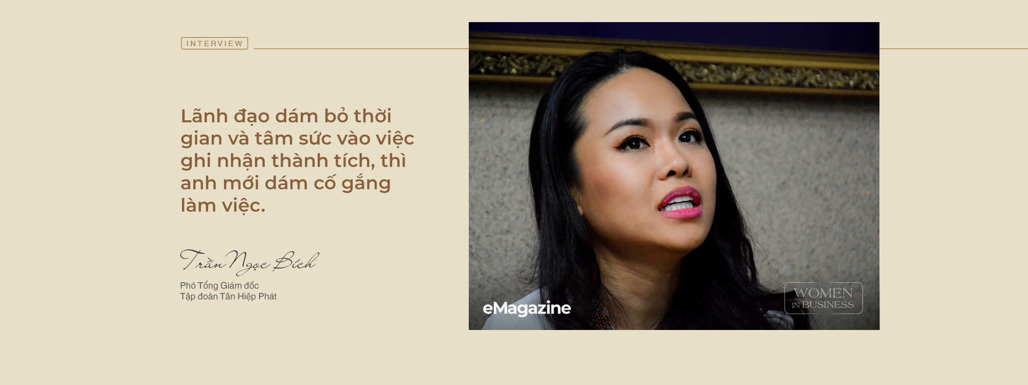 Trong suốt cuộc nói chuyện kéo dài hơn một giờ đồng hồ với chúng tôi, có 52 lần Bích dùng từ “anh em” để nhắc tới những người đồng nghiệp tại Tân Hiệp Phát. Đó cũng là cách mà cô thường gọi các cộng sự của mình trong hàng chục năm làm việc cùng với họ tại đây.