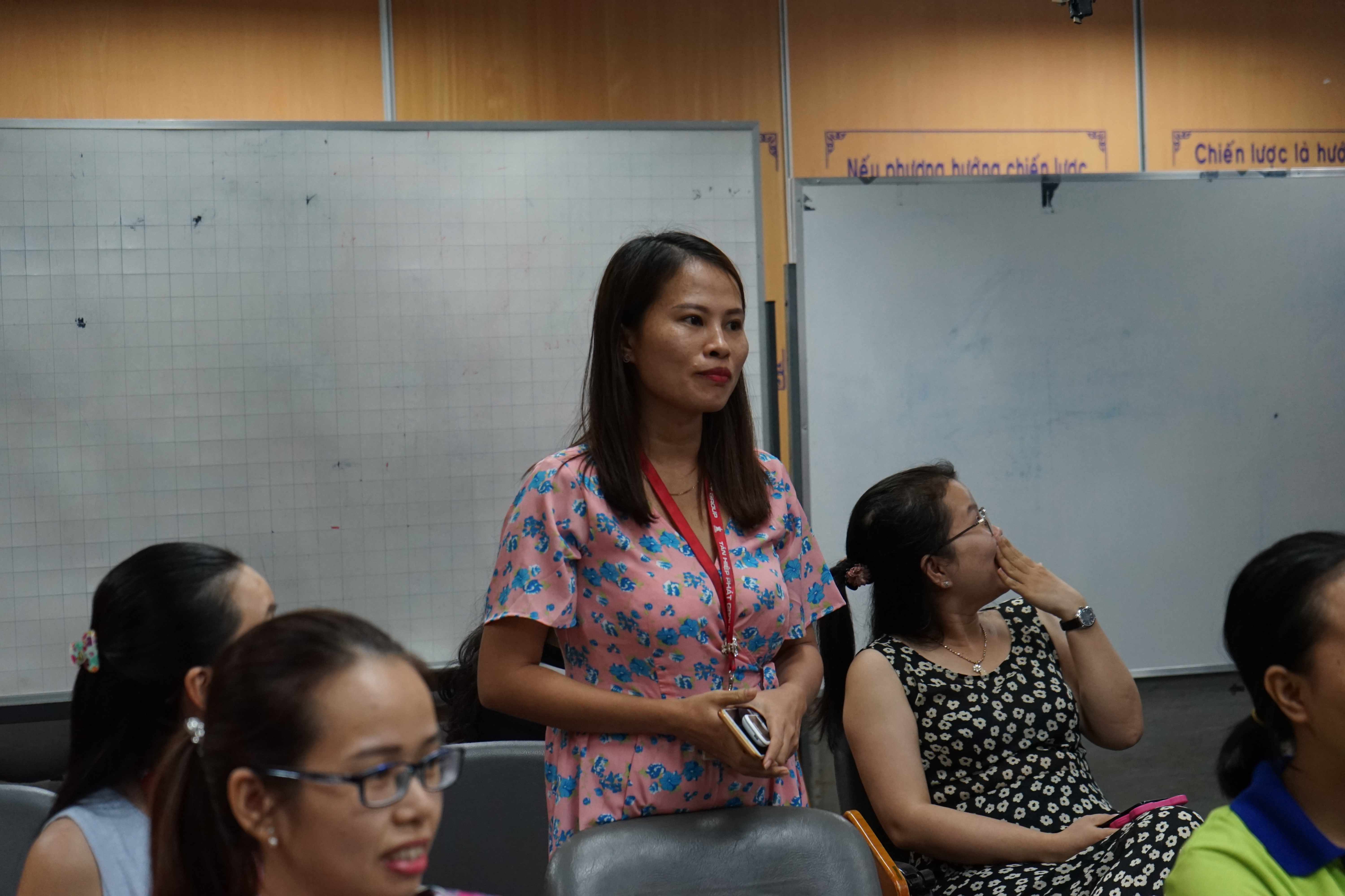 Chị Trần Uyên Phương – Phó Tổng Giám đốc Tập đoàn Tân Hiệp Phát chia sẻ tại buổi tuyển diễn viên