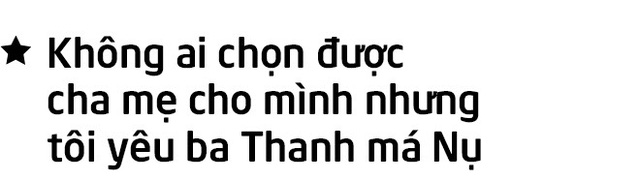 Tôi giữ niềm tin ấy suốt cuộc đời, ngay cả những khi buồn tủi nhất. Tôi nghĩ thật đơn giản, với tôi, ba má tôi là ba Thanh, má Nụ. Vậy thôi, tôi không thích gọi kèm theo tên họ là ông bán vé số, bàn bún ốc, là tỷ phú hay chính trị gia”.